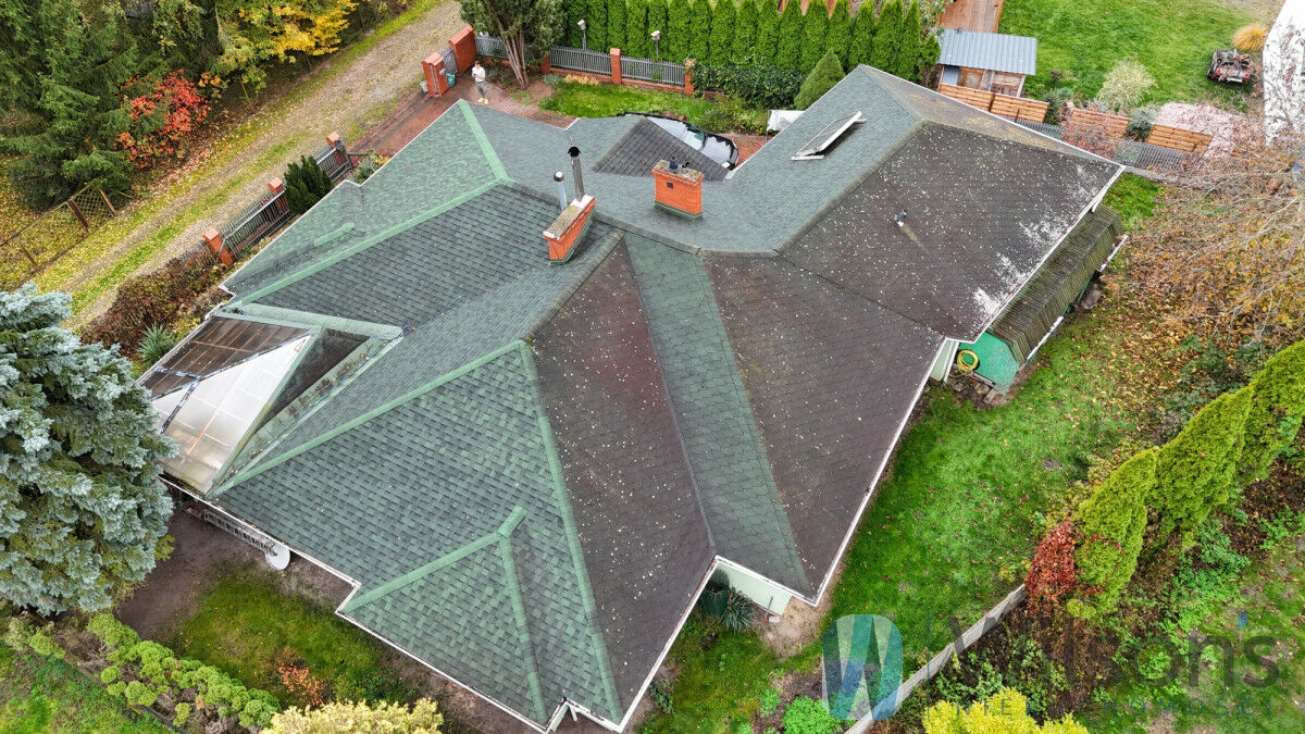 Przestronna parterowa nieruchomość w spokojnej okolicy.Dom posiada: 3 sypialnie, salon, jadalnię, kuchnię, taras, saunę, kotłownię, pralnię oraz duży garaż na dwa samochody i miejsce na stół warsztatowy i miejsce na narzędzia.